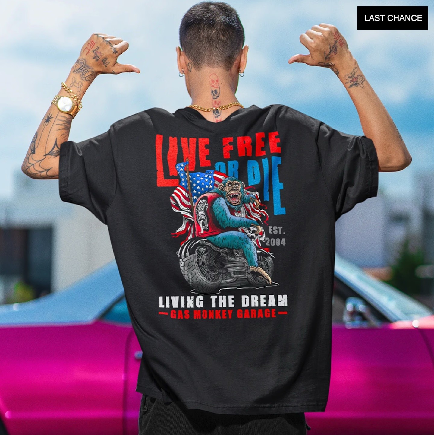 Two-year freelance partnership with Discovery Channel's Gas Monkey Garage creating merchandise, event branding, and promotional materials. Collaborated directly with Richard Rawlings and marketing team on artist series apparel, world record celebration designs, and community event branding.